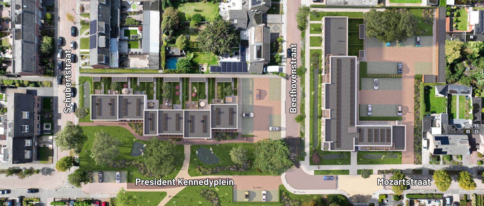 Nieuwbouwplan De Westkant bestaat uit 36 woningen verdeeld over twee locaties aan en tegenover het President Kennedyplein.